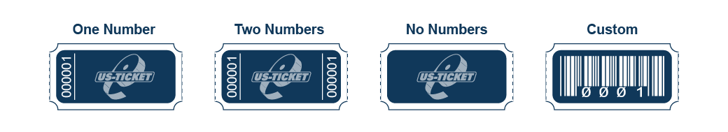 Your custom-numbered tickets can also feature numbers in your brand's signature color and font. Prefixes, suffixes, barcodes, QR codes and other variable data are also fully within US-Ticket's capability. View samples here.